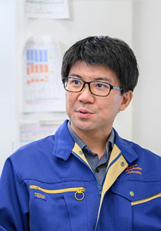 技術研究所に配属され、排出ガスをメインに研究することになりました。ディーゼル車は年々規制が厳しくなっていて、10年、20年先を見据えて対策を考えていましたから、既存の技術だけではうまくいかない。触媒メーカーやマフラーメーカーなど多くの方たちの協力を得ながら、それをエンジンに取り付けては排出ガスのチェックをしていました。"エンジンベンチ"というエンジンを回す専用の実験ルームがあるのですが、来る日も来る日もそこで実験を繰り返していました。排出ガスに含まれるNOx(窒素酸化物)を分解する働きのある尿素を噴射する制御系を変えたり、触媒変えたり,エンジンの制御を変えたり......、条件を変えて比較試験をしていました。